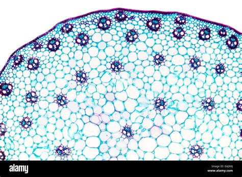 Web transport of water and minerals up the stem. While asparagus is not the plant usually presented in textbooks, it shows traits which are similar to those in corn & sugarcane. Web monocot corn stem cross section showing vascular bundles.